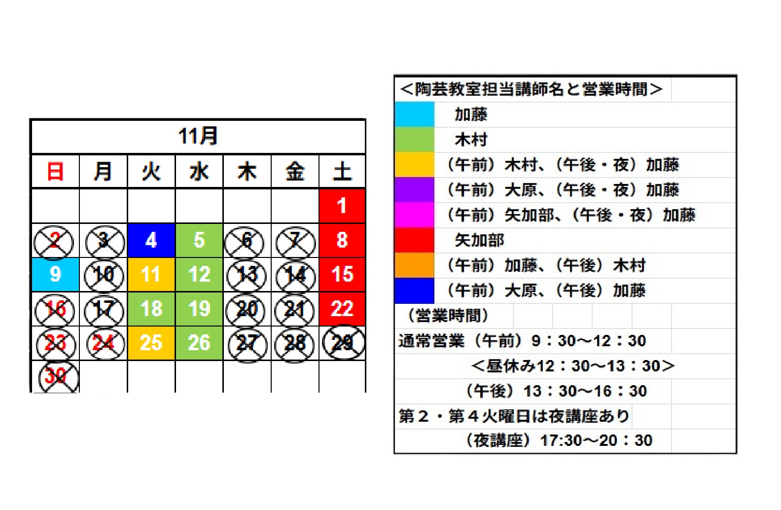 会期:11月~1日(土)~11月12日(水) ※教室開講日のみ開催