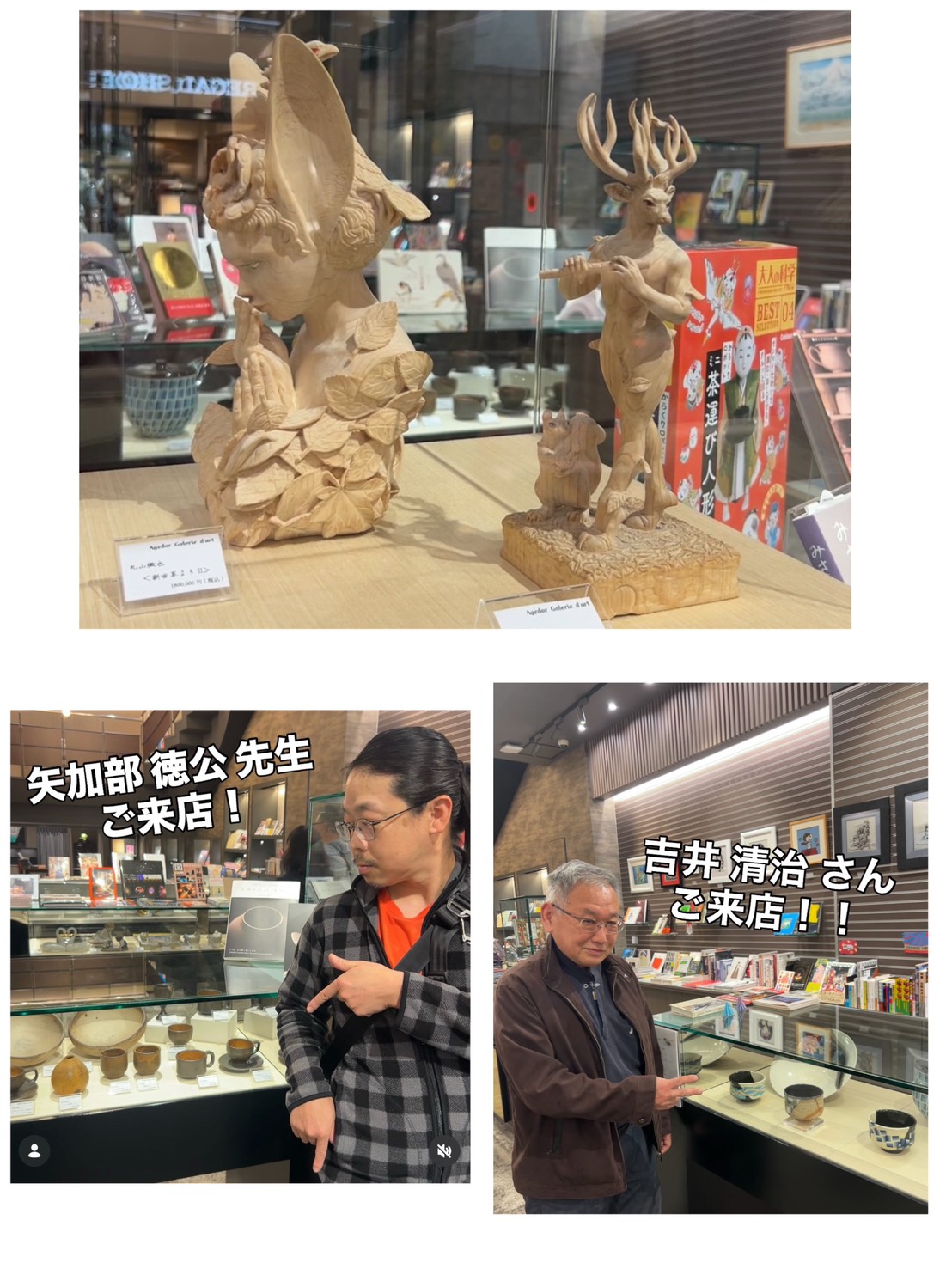 岡山市北区表町 Agedor アジュドールにて弊工房から吉井清治氏、矢加部徳公氏、丸山徹也氏の作品が常設展示されています