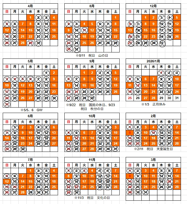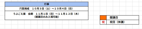 庭瀬陶芸工房の令和8年度の予定表